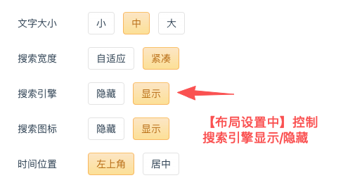 在【布局设置】中通过中改变搜索引擎在首页打开时显示或隐藏
