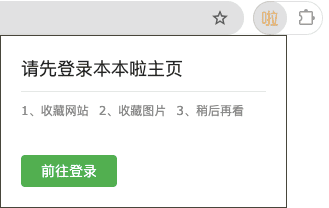 如果此时你未登录本本啦主页,那就点击 【前往登录】按钮,正常登录本本啦后,再点击插件图标,就已经是登录状态啦。